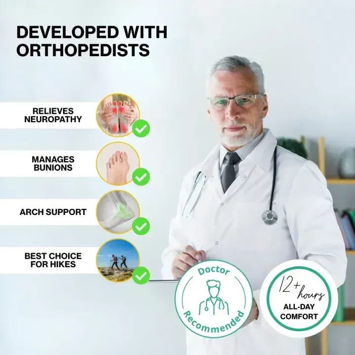 👟 Orthopedic Support — Premium insoles with an adjustable arch booster help relieve pain from plantar fasciitis, flat feet, and knee issues.