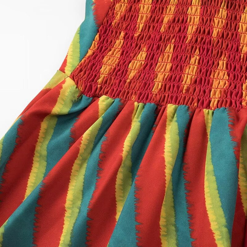 EYE-CATCHING MULTICOLOR DESIGN: This dress features a lively multicolor pattern that combines bold and bright shades, making it the perfect statement piece for any casual or festive occasion. Stand out effortlessly wherever you go.
